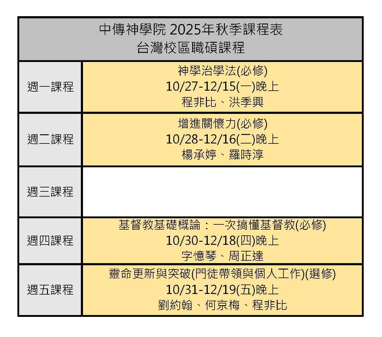 中傳神學院「職場宣教碩士科」除了傳統神學院的一般課程之外,